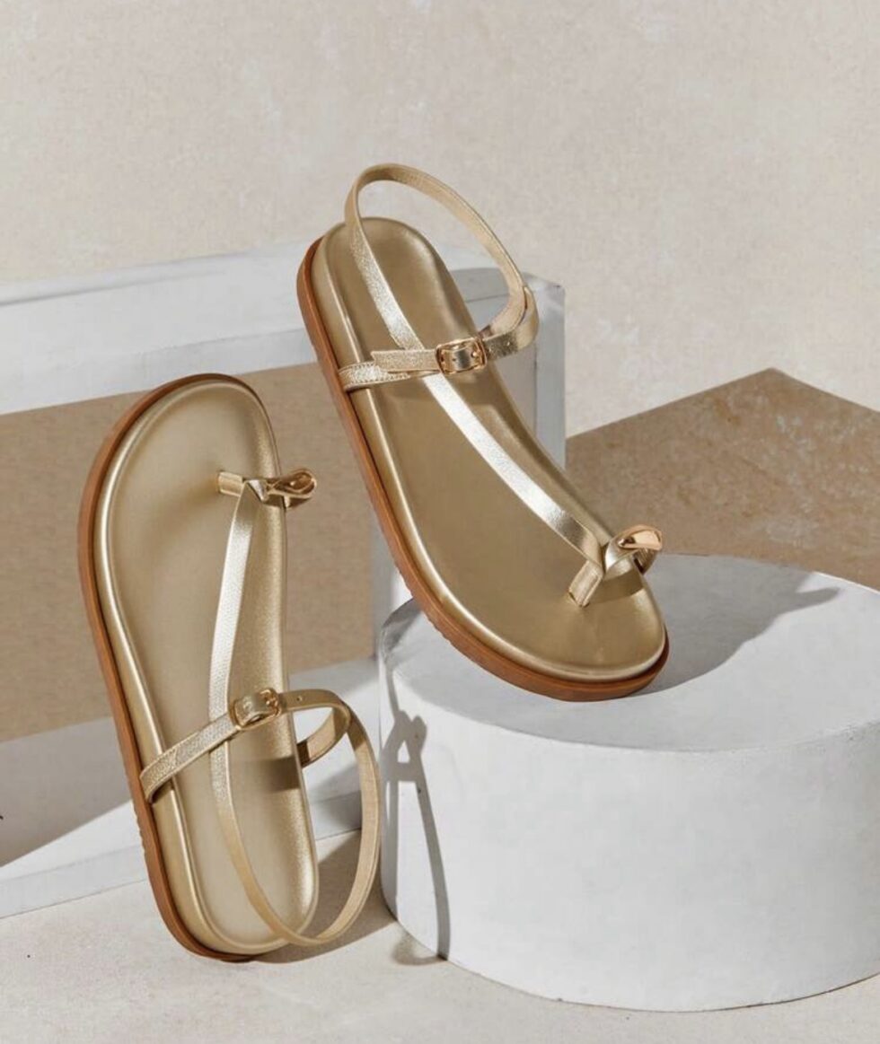 Sandales plates confortables en métal doré pour vos sorties en Jour